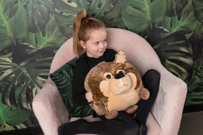 Wir präsentieren Ihnen ein wärmendes Plüschkissen in Hundform, das zu einem unverzichtbaren Bestandteil jedes Kinderzimmers wird. Dieses 3-in-1-Produkt bietet die Funktion eines Kissens, eines Muffes zum Händewärmen und eines kuscheligen Plüschtieres. Dank der zwei seitlichen Öffnungen können Sie Ihre Hände leicht wärmen – besonders angenehm an kalten Tagen.