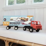 Das MyRoads Starter-Set bietet Kindern unendliche Möglichkeiten zum Streckenbau mit einer Länge von bis zu 700 cm. Die Teile aus robustem Material auf Basis von recyceltem Holz lassen sich nahtlos verbinden und behalten ihre Form, sodass Kinder Städte, Rennstrecken und Verkehrsknotenpunkte gestalten können. Das zeitlose Retro-Design begeistert kleine wie große Baumeister.