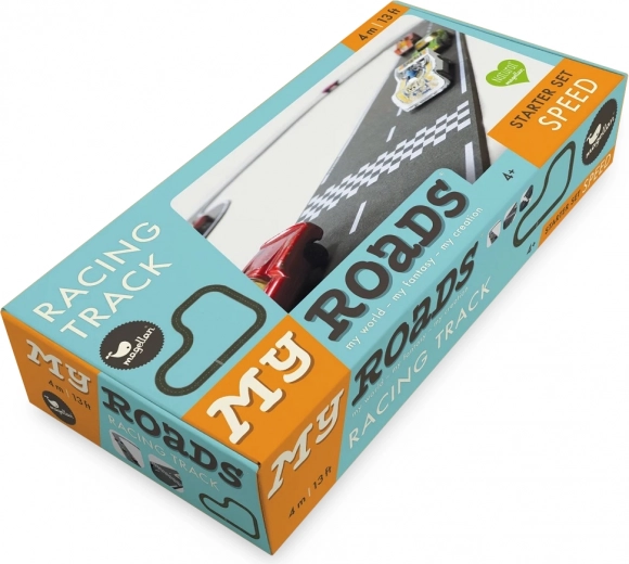 Das Set enthält alles für einen Rundkurs mit 400 cm Länge und eine Spielfläche von 150 × 100 cm. Es ist mit sämtlichem Zubehör der MyRoads-Reihe kompatibel, sodass die Strecke jederzeit erweitert werden kann. Autos sind nicht im Lieferumfang enthalten. Als Naturprodukt kann das Material leichte Farbabweichungen aufweisen.