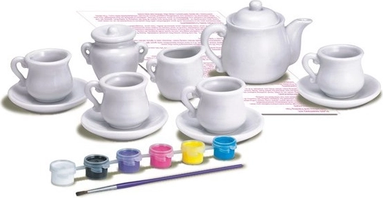 Im Set finden Sie alles, was zum Verzieren des 13-teiligen Mini-Teeservices nötig ist. Nach dem Gestalten ist es ideal zum Spielen mit Freunden oder Puppen sowie als schönes Accessoire fürs Kinderzimmer.