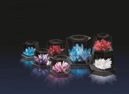 Ihre fertigen Kristalle können Sie in der transparenten Vitrine aufbewahren und ihre Struktur und Farben aus nächster Nähe bewundern.
