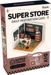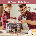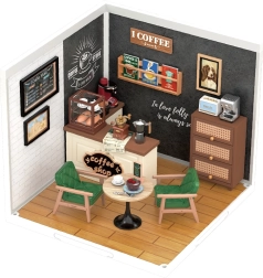 Treten Sie ein in die Welt des Mini-Cafés, in der jedes Detail erfreut – von Stühlen und Tisch bis hin zur Kaffeemaschine und Wanddekoration. Das Set wird zerlegt geliefert und ergibt nach dem Aufbau eine eindrucksvolle Szene, die jedes Regal, jeden Tisch oder jede Vitrine verschönert. Die LED-Beleuchtung verleiht dem Modell eine einzigartige Atmosphäre.