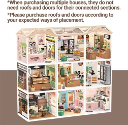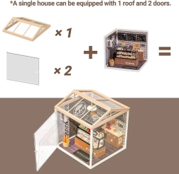 Für eine einzelne Miniatur empfehlen wir 2× Tür und 1× Dach B. Bei einer größeren Anordnung mit mehreren Häuschen wählen Sie so viele Türen und Dächer, wie ungeschützte Seiten Ihrer Installation vorhanden sind. Dank der Kompatibilität mit den Modellen DW001 bis DW012 sind Erweiterbarkeit und Modularität gewährleistet.