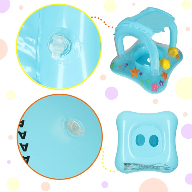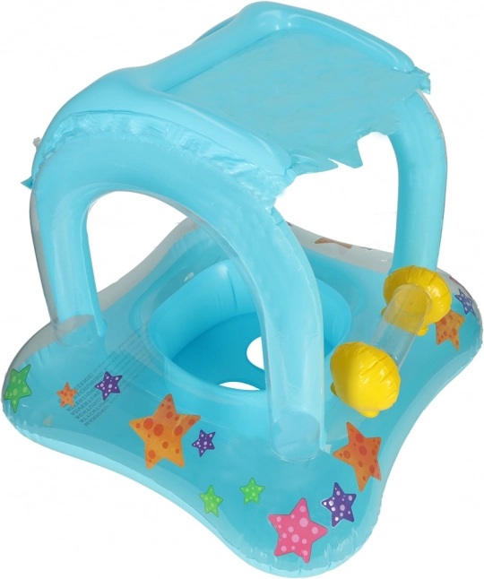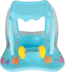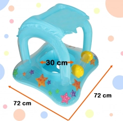 Der aufblasbare Schwimmring mit Baldachin ist die ideale Lösung für sichere Wasserspiele Ihrer Kleinsten. Seine attraktive blaue Farbe und bunte Seesterne verschönern jeden Tag am Wasser. Der Baldachin schützt das Kind vor Sonnenstrahlen, während es bequem spielen und sich auf den Wellen wiegen kann.