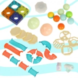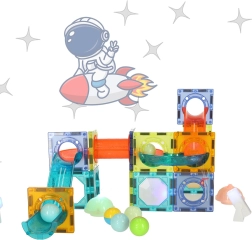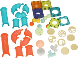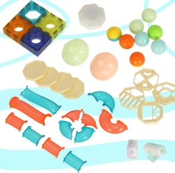 Das Set bietet vielseitiges Bauen in 2D und 3D: von einfachen Formen bis hin zu komplexen Bahnen. Magnetische Quadrate sorgen für eine stabile Konstruktion, während Rohre und Tunnel einfach „einrasten“. Dank leuchtender Teile und Kugeln wird jede Abfahrt zu einer unterhaltsamen, visuell fesselnden Show.