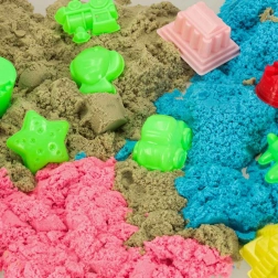 Das Spielen mit diesem Sand bietet eine große Gelegenheit für kreatives Verbringen der Freizeit und fördert zugleich die Feinmotorik. Durch das Formen und Kneten des Sandes werden die manuellen Fähigkeiten der Kinder trainiert.