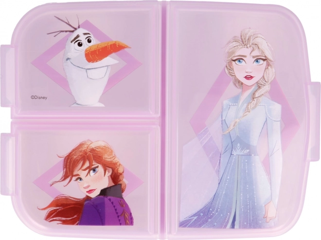 Praktische Snackbox mit Motiv von Die Eiskönigin 2 bietet drei getrennte Fächer für verschiedene Speisen, besteht aus robustem Kunststoff, ist BPA-frei und hat eine offizielle Lizenz – ideal für die Schule, den Spielplatz und Ausflüge.