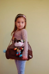 An der Tasche befindet sich ein stylisches Maskottchen, das leicht abgenommen und als Spielzeug verwendet werden kann. Diese variable Lösung begeistert sowohl kleine als auch große.