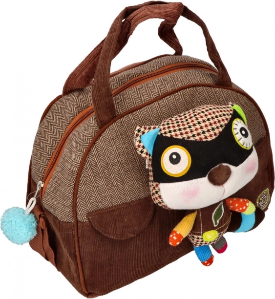 Wir präsentieren Ihnen eine einzigartige und farbenfrohe Kindertasche mit niedlichem Waschbär. Die Tasche ist aus Cord gefertigt, schließt mit einem Reißverschluss und das vordere Maskottchen zieht Aufmerksamkeit durch verschiedene Nähte und Materialien auf sich.