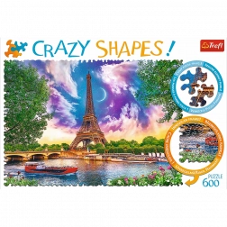 Die Serie Crazy Shapes ist bekannt für ihre originellen Stile, bei denen die Puzzles durch unregelmäßige Formen ohne gerade Linien und unregelmäßige Kanten gekennzeichnet sind. Nach dem Zusammenbau entsteht ein Bild mit einem romantischen Blick auf den Pariser Himmel. Hochwertige Materialien wurden zur Herstellung dieser Puzzles verwendet, einschließlich spezielles kalandriertes Papier, das Licht reflektiert und das Legen erleichtert.