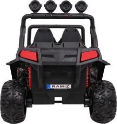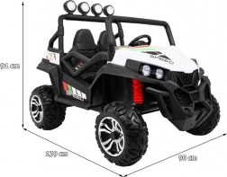 Der Grand Buggy 4x4 Lift ist ein geräumiges und robustes Fahrzeug für zwei Kinder, das dank großer EVA‑Räder, hinterer Stoßdämpfer und einer hohen Bodenfreiheit von 16 cm auch unebenes Gelände meistert. Vier 45‑W‑Motoren und zwei 12‑V/7‑Ah‑Akkus sorgen für sanftes Anfahren, Vor‑ und Rückwärtsfahrt sowie langen Spielspaß mit einer Ladung.