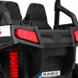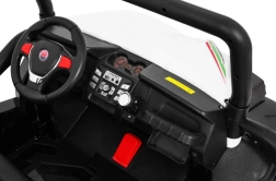 Eltern schätzen die 2,4‑GHz‑Fernbedienung mit drei Geschwindigkeiten und der Not‑Stop-Taste. Kleine Fahrer freuen sich über das Audio‑Panel mit FM‑Radio, MP3, SD, AUX und Bluetooth, Sounds am Lenkrad und die funktionale LED‑Beleuchtung mit Schalter. Für Komfort und Sicherheit sorgen der belüftete Sitz aus Ökoleder mit Verstellung, Sicherheitsgurte und zu öffnende Türen.