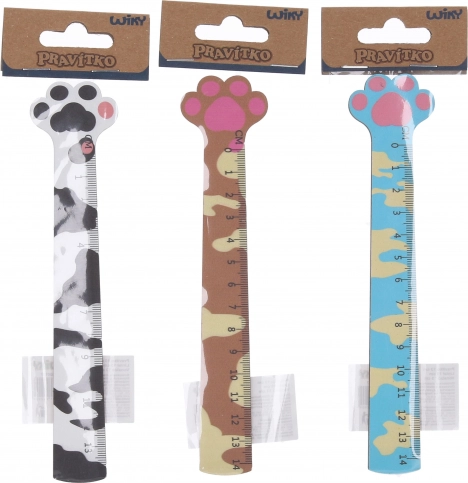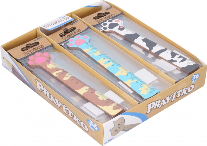 Holzlineal mit Katzenpfoten-Motiv ist ein praktisches Zubehör für Schulkinder und Katzenliebhaber. Dank der kompakten Größe passt es leicht in Federmäppchen oder Schultasche.