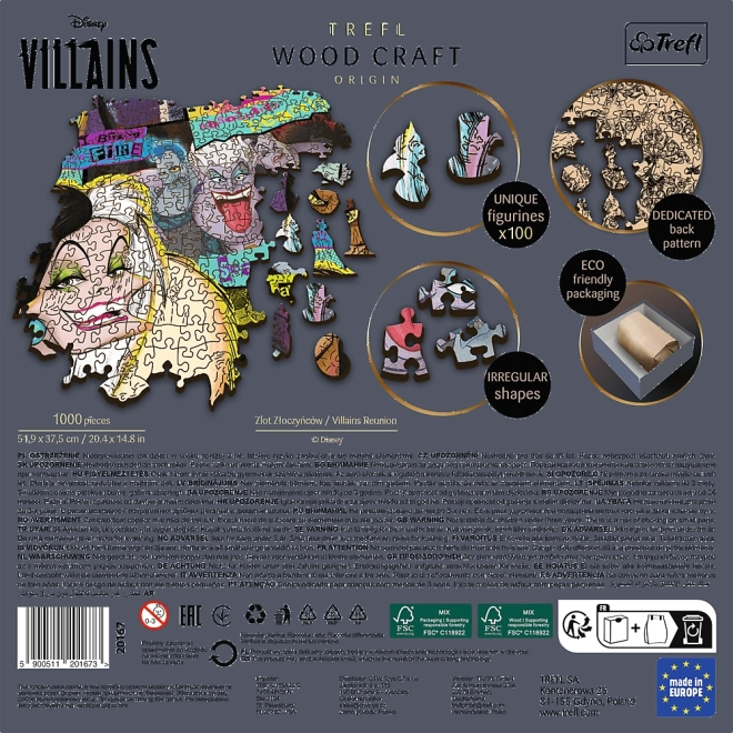 Gönnen Sie sich Puzzlespaß mit dem außergewöhnlichen Motiv der Disney-Bösewichte in Premiumqualität. Die Holzpuzzles TREFL Wood Craft Origin bestehen aus einer starken Faserplatte und sind laserpräzise ausgeschnitten, was glatte Kanten und ein angenehmes Ineinandergreifen der Teile gewährleistet. Die doppelseitige Ausführung sorgt für doppelten Spaß – auf der einen Seite eine detaillierte Illustration, auf der anderen ein stilvolles Muster.