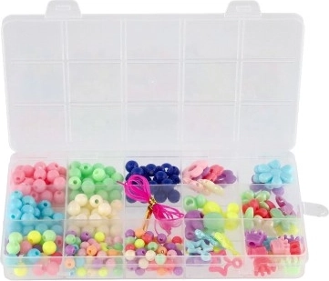 Die transparente Box hält die Perlen übersichtlich sortiert und erleichtert die Auswahl und Aufbewahrung – ideal für Zuhause und auf Reisen.
