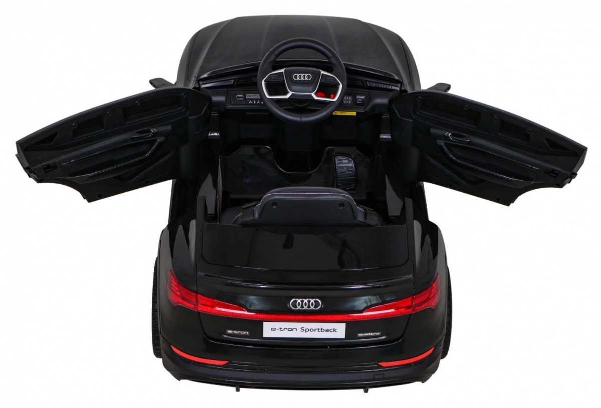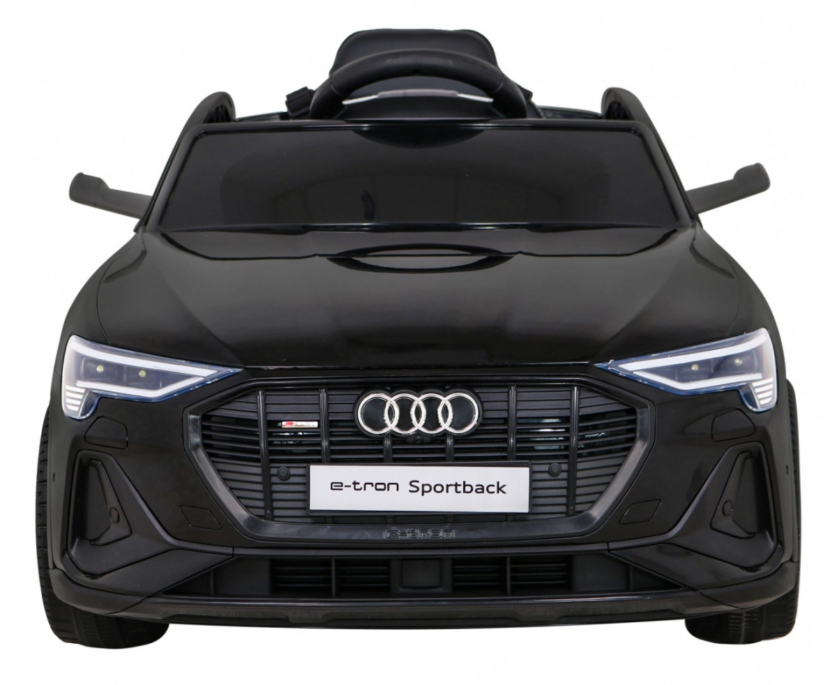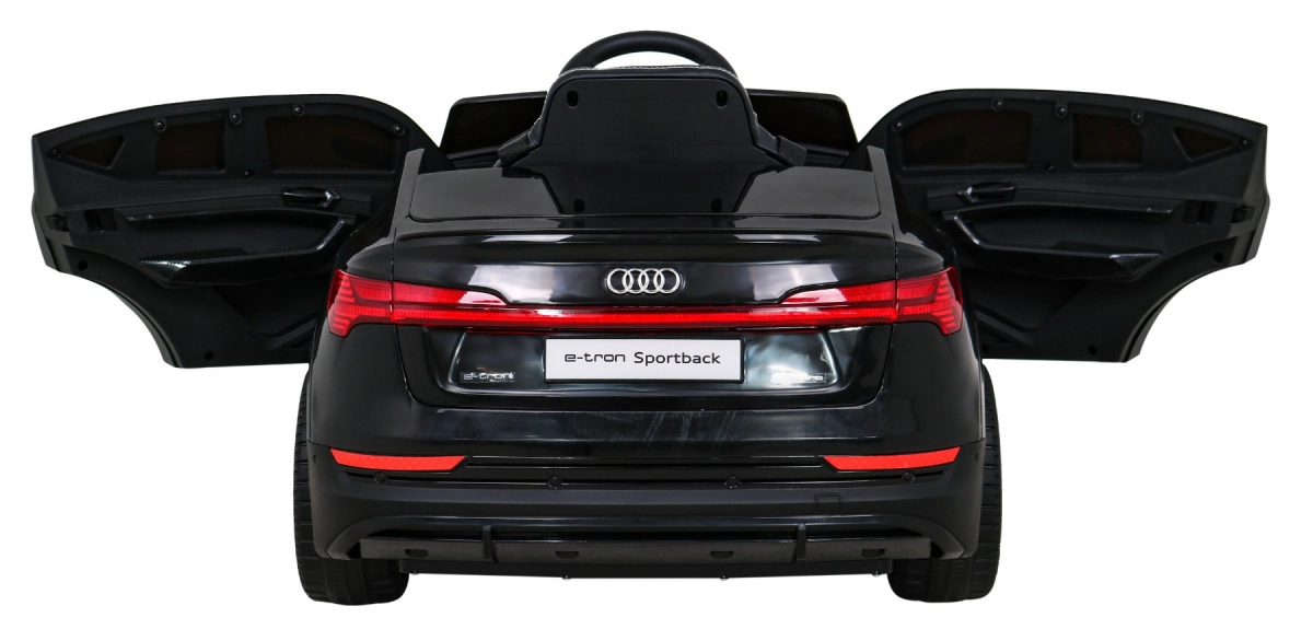 Detailgetreue Karosserie, funktionale LED-Leuchten und AUDI-Embleme vermitteln den Eindruck eines echten e-tron Sportback im Kinderformat.
