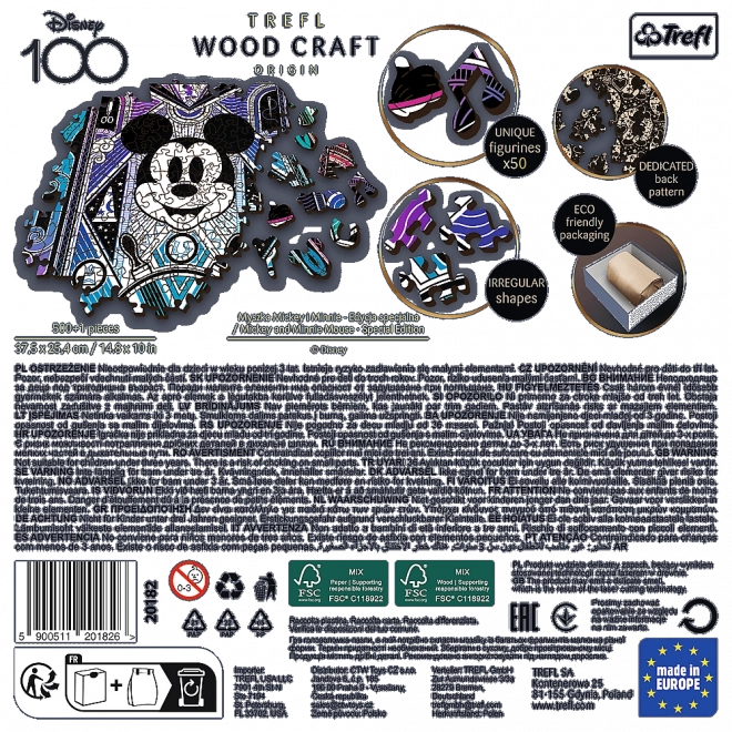 Tauchen Sie ein in die Welt der Puzzles mit dem einzigartigen Holzpuzzle von Mickey Mouse und Minnie. Dieses Puzzle bietet etwas Besonderes - spezielle geformte Teile in Form von berühmten Gebäuden, Tieren und Gegenständen, die mit Laser geschnitten wurden, um absolut glatte Kanten zu gewährleisten. Dank seiner Beidseitigkeit bietet es doppelt so viel Spaß, mit einem Bild auf der einen und einem Muster auf der anderen Seite.