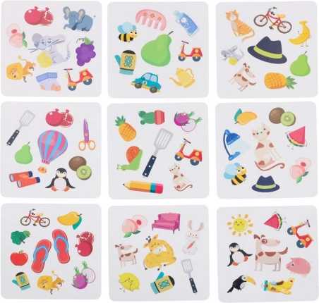 Schnelles Reaktions-Kartenspiel für Kinder und Erwachsene, bei dem ihr stets ein gemeinsames Bild zwischen den Karten finden müsst. Das Set enthält 54 stabile Karten mit markanten Illustrationen sowie eine Tischglocke, mit der der Spieler das richtige Finden der Übereinstimmung signalisiert. Eine tolle Wahl für Familienabende und zur Förderung von Wahrnehmung, Konzentration und schnellen Reaktionen.