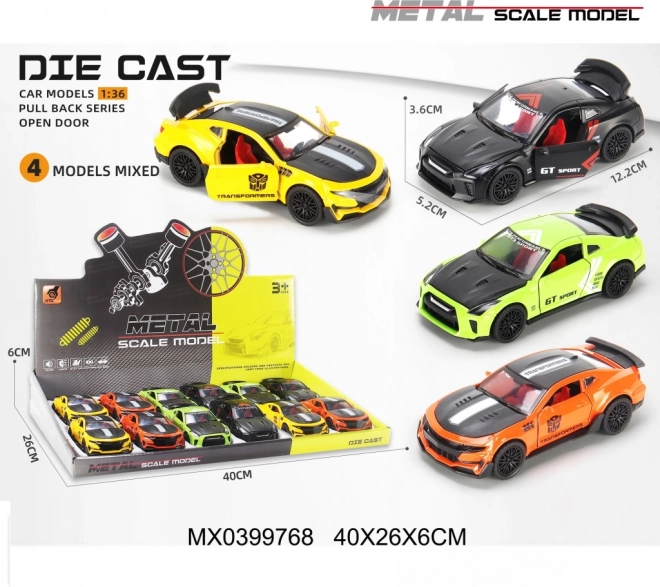 Entdecken Sie ein realistisches Metallmodell eines Sportwagens im Maßstab 1:36. Dank robuster Verarbeitung und öffnenden Türen wirkt das Auto authentisch und liegt hervorragend in der Hand. Die Pull-Back-Funktion sorgt für eine flotte Fahrt – einfach nach hinten ziehen und los geht’s.