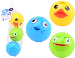 Die weichen Bällchen von Happy World bieten ein sicheres und vergnügliches Spiel für die kleinsten Kinder. In Form kleiner Tierköpfchen – Fröschchen, Fischlein und Entchen – laden sie zum Entdecken, Drücken und Rollen ein und fördern ganz natürlich fantasievolles Spiel.