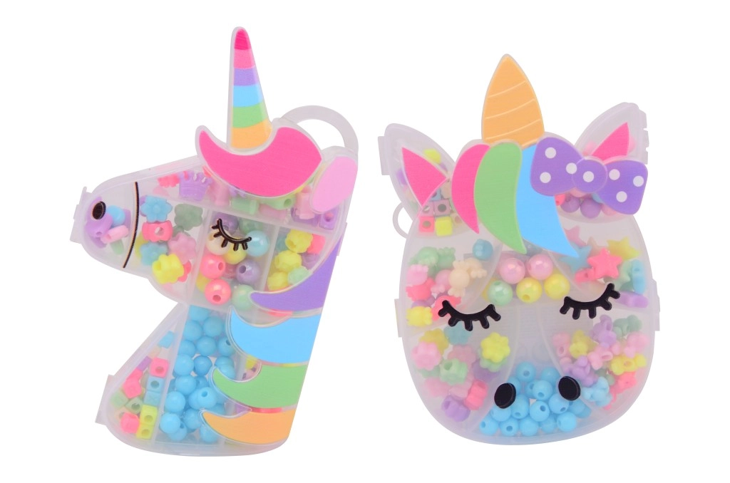 Kreativset für kleine und große Schmuckmacher – farbiges Perlenset in einer praktischen Schachtel in Einhornform. Ideal zum Gestalten von Armbändern, Halsketten und Anhängern zu Hause und unterwegs.