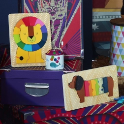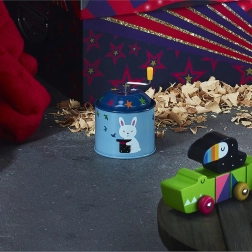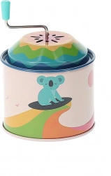 Diese traditionellen metallenen Spieluhren wurden entworfen, um nicht nur mit ihrer Funktion, sondern auch mit ihrem Design zu erfreuen. Jede Spieluhr ist mit fröhlichen Tiermotiven verziert, die sich um Themen wie Ballonfliegen, Bücherlesen oder Surfen drehen. Illustrator Andy Westface aus Hongkong bringt seine typische Verspieltheit und Farbenfreude, die ein Gefühl von Freude und Harmonie schaffen.