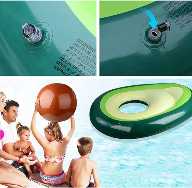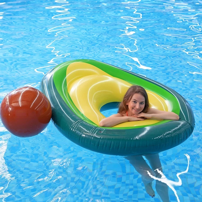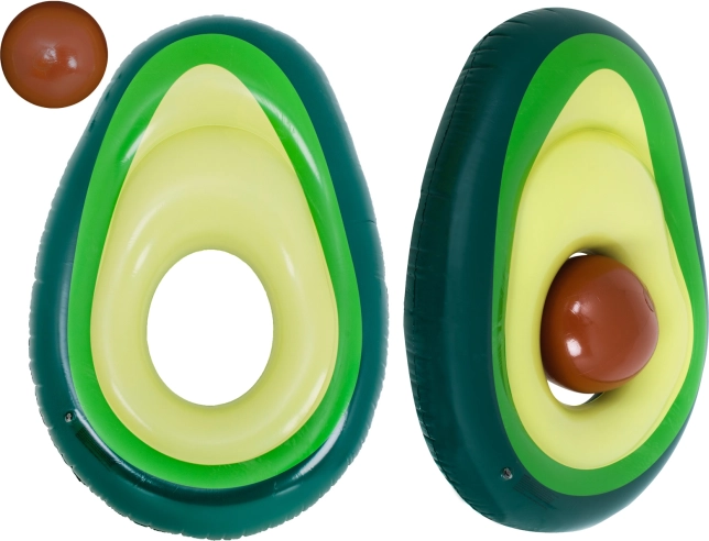 Die originelle Liege in Form einer reifen Avocado bringt jeden Pool und Strand zum Strahlen. Der abnehmbare „Kern“ funktioniert als separater Ball für Wasser- und Strandspiele oder als Kissen/Lehne beim Chillen auf dem Wasser. Die offene Mitte verwandelt die Liege in einen stabilen Ring zum Relaxen oder zum Schwimmenlernen.