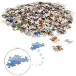 Nach dem Zusammensetzen hat das Puzzle die Maße 92 x 68 cm. Die durchschnittliche Größe eines Teils beträgt 1,9 x 1,7 cm.