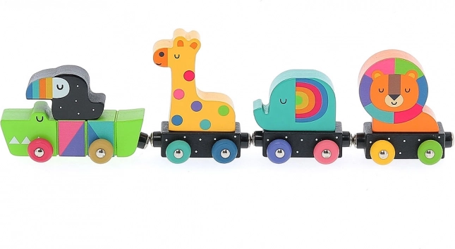 Die Waggons stellen verschiedene Tiere dar, die nicht nur schön sind, sondern auch die fantasievolle Spielweise inspirieren.