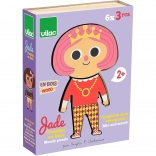 Dieses hölzerne Ankleidepuzzle bietet Kindern die Möglichkeit, die Figur Jade stilvoll zu kleiden. Mit 6 verschiedenen Outfits können Kinder die Kleidung kombinieren und ihre Vorstellungskraft fördern.