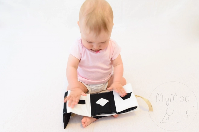 Entdecken Sie den Zauber des kontrastreiches textilen Leporellos von MyMoo, das entwickelt wurde, um die Sinne Ihres Kindes zu stimulieren. Ideal zur Förderung der visuellen Wahrnehmung und der Hand-Auge-Koordination Ihrer Kleinen.