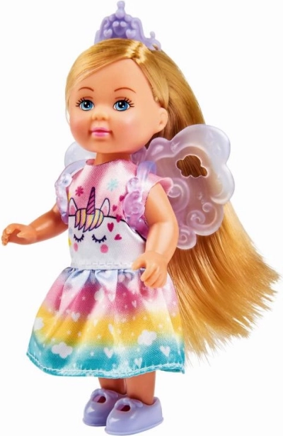 Entdecken Sie die zauberhafte Welt mit der Puppe Evi Love Unicorn Fairy. Dank des farbenfrohen Kleids mit Einhornmotiv, der glitzernden Krone und den abnehmbaren Flügeln können Kinder ganz leicht eigene, fantasievolle Geschichten erschaffen. Die kompakte Größe von 12 cm macht sie zur perfekten Begleiterin für den Rucksack und auf Reisen.