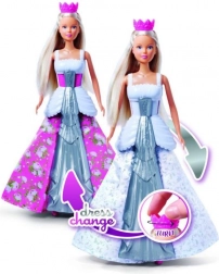 Die Puppe STEFFI LOVE Magische Hochzeit bietet ein bezauberndes Erlebnis dank des cleveren 2-in-1-Verwandlungsmechanismus der Kleider. Mit nur einer Drehung der Krone wird aus dem romantischen rosafarbenen Blumenkleid eine wunderschöne weiße Brautrobe. Die langen blonden Haare können gekämmt und frisiert werden, sodass jedes Spiel anders wird.