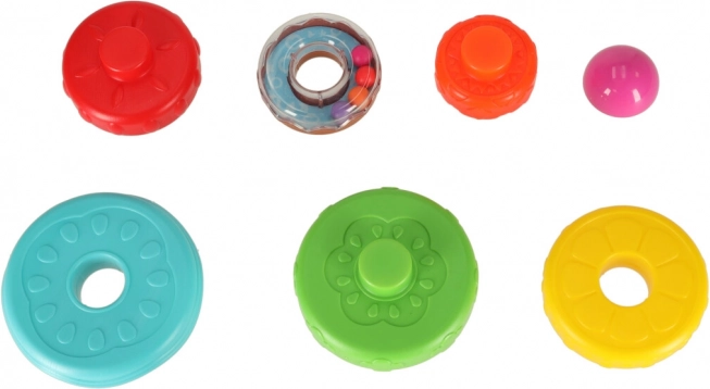 Jeder Ring hat eine andere Farbe und Oberfläche für vielfältige sensorische Eindrücke und das Lernen des Sortierens nach Größe.