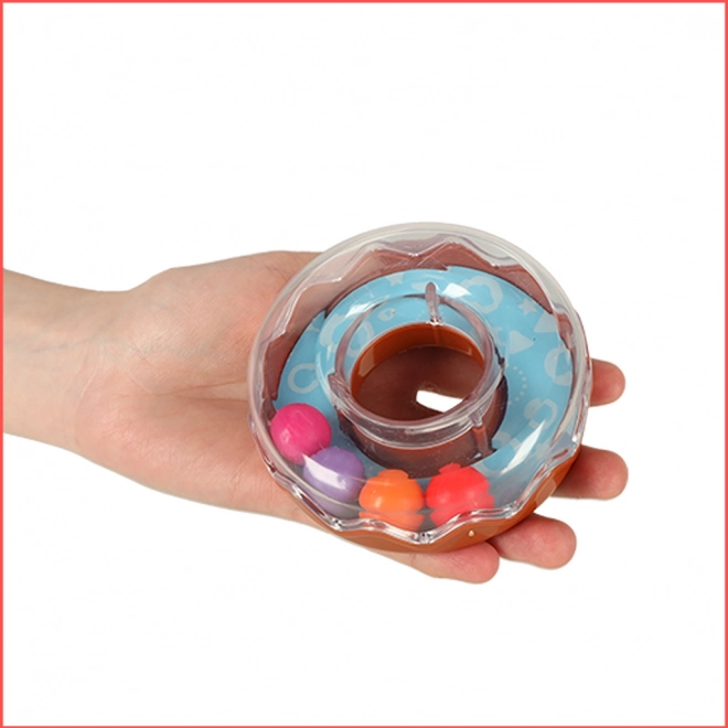Fröhliche Perlen im Inneren des transparenten Rings rasseln bei Bewegung und stimulieren den Seh- und Hörsinn des Kindes.