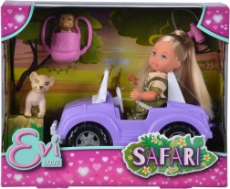 Begebt euch mit der kleinen Puppe Evi auf ein abenteuerliches Safari-Erlebnis! Dieses zauberhafte Set enthält eine hübsche Puppe, ein Geländewagen, ein Äffchen, ein Löwenbaby und ein Fernglas.