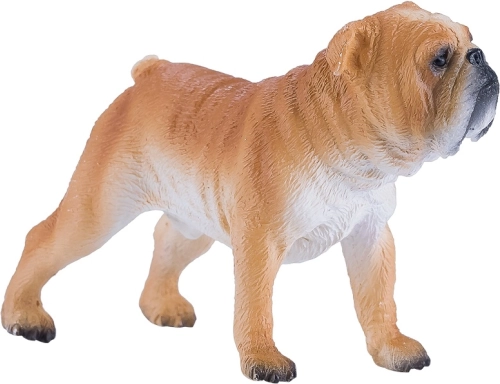 Die realistische Figur der Rasse Englische Bulldogge von Mojo begeistert Kinder und Sammler. Sie hat lebensechte Details und Farbgebung, ist handbemalt und aus phthalatfreiem PVC gefertigt. Ideal zum Lernen über Tiere, zum Spielen und Ausstellen.