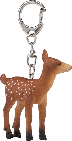 Der Schlüsselanhänger zeigt ein kleines Rehkitz mit glaubwürdigen Details und natürlicher Färbung.