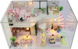 Entdecken Sie den Zauber der Details mit dem Miniaturhaus Anninas Rosa Melodie. Puzzle zur Entwicklung der Motorik mit Beleuchtung und elegantem Design.