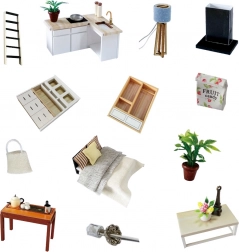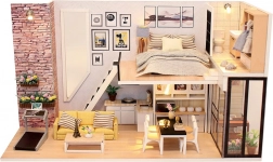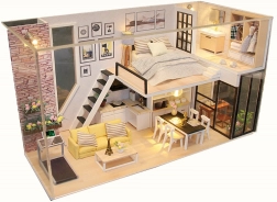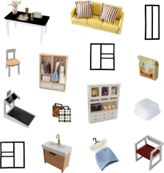 Dieser Bausatz beinhaltet LED-Beleuchtung, die Ihrem Werk ein realistisches Aussehen verleiht. Bemerkenswert sind auch die realistischen dekorativen Details, die künstlerische Wände, ein Sofa und ein Ess-Set umfassen.