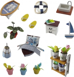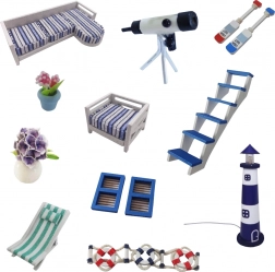 Genießen Sie die Schönheit der Meeresumgebung durch die detaillierte Umsetzung des Interieurs, das ein Schlafzimmer und ein Wohnzimmer umfasst. Dank realistischer Details wie Rettungsringen und Leuchten in Form von Leuchttürmen wirkt Ihr Modell wie ein echtes Stück Küstenparadies.