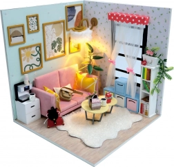 Bauen Sie sich ein Stück gemütliches Zuhause in Form eines miniaturisierten Wohnzimmers, das nach der Fertigstellung Regal oder Schreibtisch erstrahlen lässt. Der Bausatz kommt zerlegt, und dank der ausführlichen Schritt-für-Schritt-Anleitung gelingen Kleben und kleine Anpassungen mühelos. Die integrierte LED-Beleuchtung verleiht der Szene eine authentische Atmosphäre – Batterien sind im Lieferumfang enthalten.