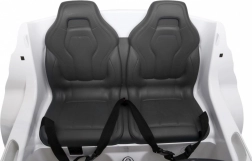 Breiter Sitz aus schwarzem Eco-Leder mit doppelten Sicherheitsgurten bietet Komfort und Sicherheit für zwei Passagiere.