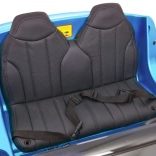 Sitz aus schwarzem Eco-Leder mit Doppelgurten, LED-Lichter vorne und hinten sowie Audio-Panel mit MP3/USB/SD/AUX und Sounds am Lenkrad.