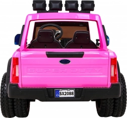 Der große rosa Ford Super Duty Pick-up ist für eine stabile und komfortable Kinderfahrt konzipiert. Vier 45-W-Motoren ermöglichen sanftes Anfahren und reichlich Kraft, während große EVA-Räder Unebenheiten hervorragend dämpfen. Für Sicherheit sorgen Sicherheitsgurte, die Fernbedienung mit STOP-Funktion und öffnende Türen für leichtes Einsteigen.