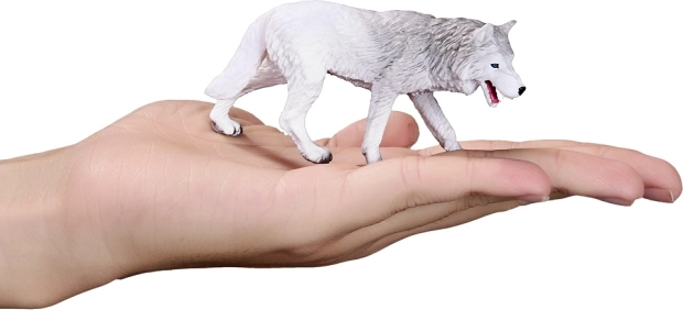 Realistische Figur eines Arktiswolfs ist ideal für Bildungs- oder Sammlerzwecke. Sie beeindruckt durch präzise Verarbeitung und handgemalte Details, die das Aussehen dieses nördlichen Raubtiers getreu einfangen.