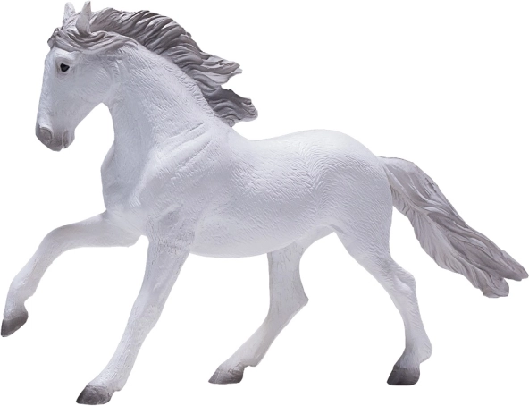Mojo Lusitanisches Pferd weiß ist eine elegante und detaillierte Kunststofffigur, die eines der ikonischsten Pferde darstellt. Seine feinen Details wie fließende Mähne und realistische Pose tragen zu seiner Authentizität bei.