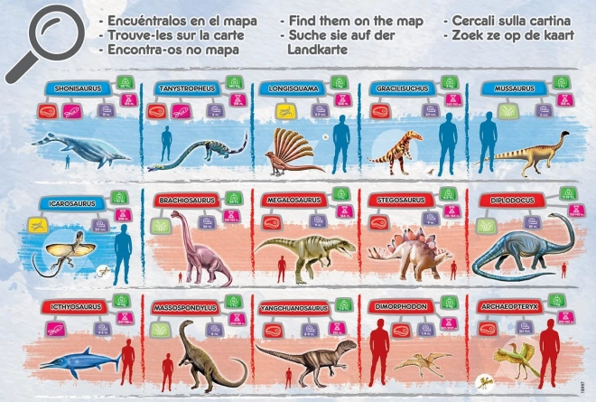 Entdecken Sie den Zauber der prähistorischen Welt mit unseren Puzzles. Diese Puzzles machen nicht nur Spaß, sondern bilden auch weiter. Sobald sie zusammengesetzt sind, können die Kinder verschiedene Dinosaurierarten nachschlagen und mehr über sie erfahren durch das beigelegte Informationsblatt, das Folgendes enthält:
