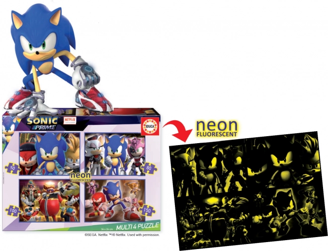 EDUCA Leuchtendes Puzzle Sonic Prime 4in1 (50, 80, 100, 150 Teile)