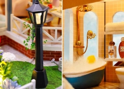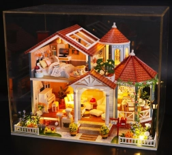 Dieses ausgearbeitete Miniaturhaus ist ideal für alle, die kreatives Gestalten und realistische Details lieben. Der Bausatz wird zerlegt geliefert und bietet entspannende Stunden beim Zusammensetzen, Kleben und Ausarbeiten der Accessoires. Nach der Fertigstellung erhalten Sie ein einzigartiges Dekorationsobjekt mit gemütlichen Räumen und funktionaler LED-Beleuchtung.